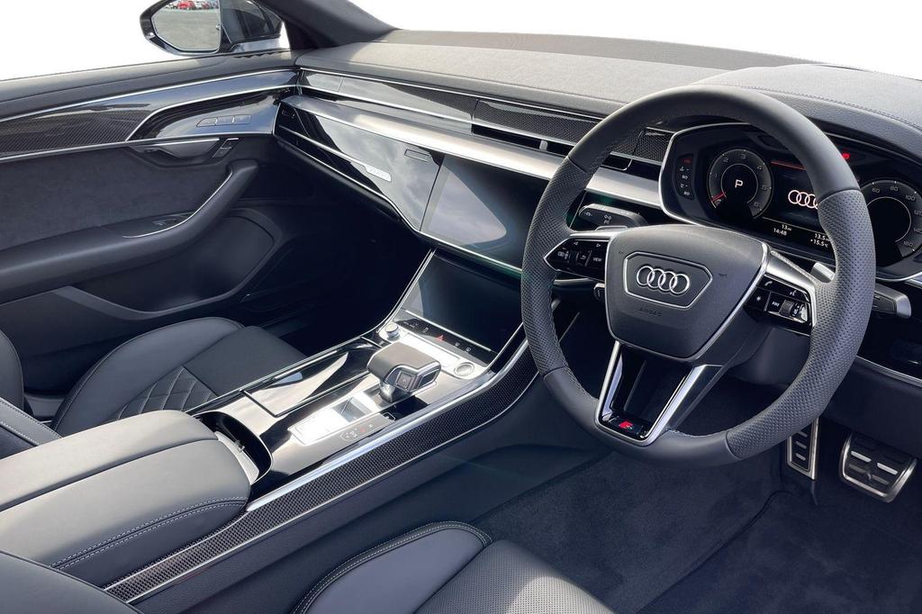 The 2024 Audi A8 50 TDI Black Edition in Mythos Black is the epitome of luxury, performance, and cutting-edge technology. Powered by a 286PS 3.0 TDI engine, it seamlessly pairs with the Tiptronic transmission for smooth, powerful driving. The renowned quattro all-wheel drive system ensures both a composed and engaging driving experience. The Black Edition adds a bold aesthetic with 21″ Audi Sport alloy wheels, rear privacy glass, and a striking Black Styling Pack. Inside, the cabin exudes elegance with Valcona leather upholstery, ambient lighting, and high-end materials like darkened matt-brushed aluminium. Technology is at the forefront with a 10.1″ MMI Navigation Plus screen, wireless Apple CarPlay/Android Auto, a customisable 12.3″ Virtual Cockpit, and the optional Technology Pack, which includes the Bang & Olufsen 3D Sound System, Digital Matrix LED headlights, and a 360-degree camera. Safety and driver assistance features include adaptive cruise control, Pre-Sense Front & Basic, and parking sensors.
