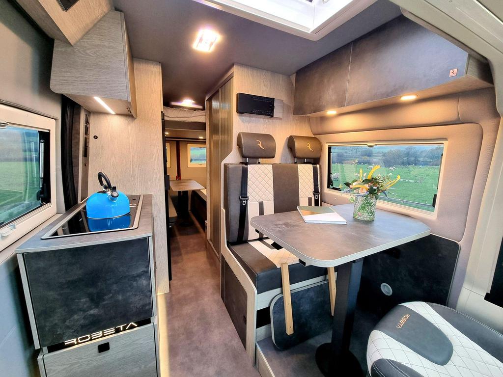 This brand-new Robeta Apollo offers a spacious and versatile layout for families and adventurers alike. With a length of 6.36 meters, it provides ample room for up to 4 passengers and a flexible living space that includes a fixed double bed and a convertible rear bed. The RV is fully equipped with modern amenities, including a solar system, off-grid capabilities, and a reverse camera.