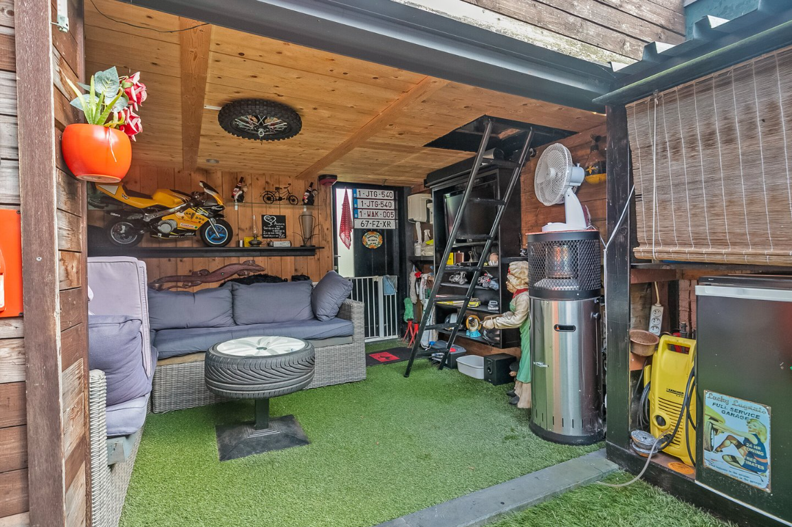 - Additional Storage: Detached wooden shed and utility space for a washing machine