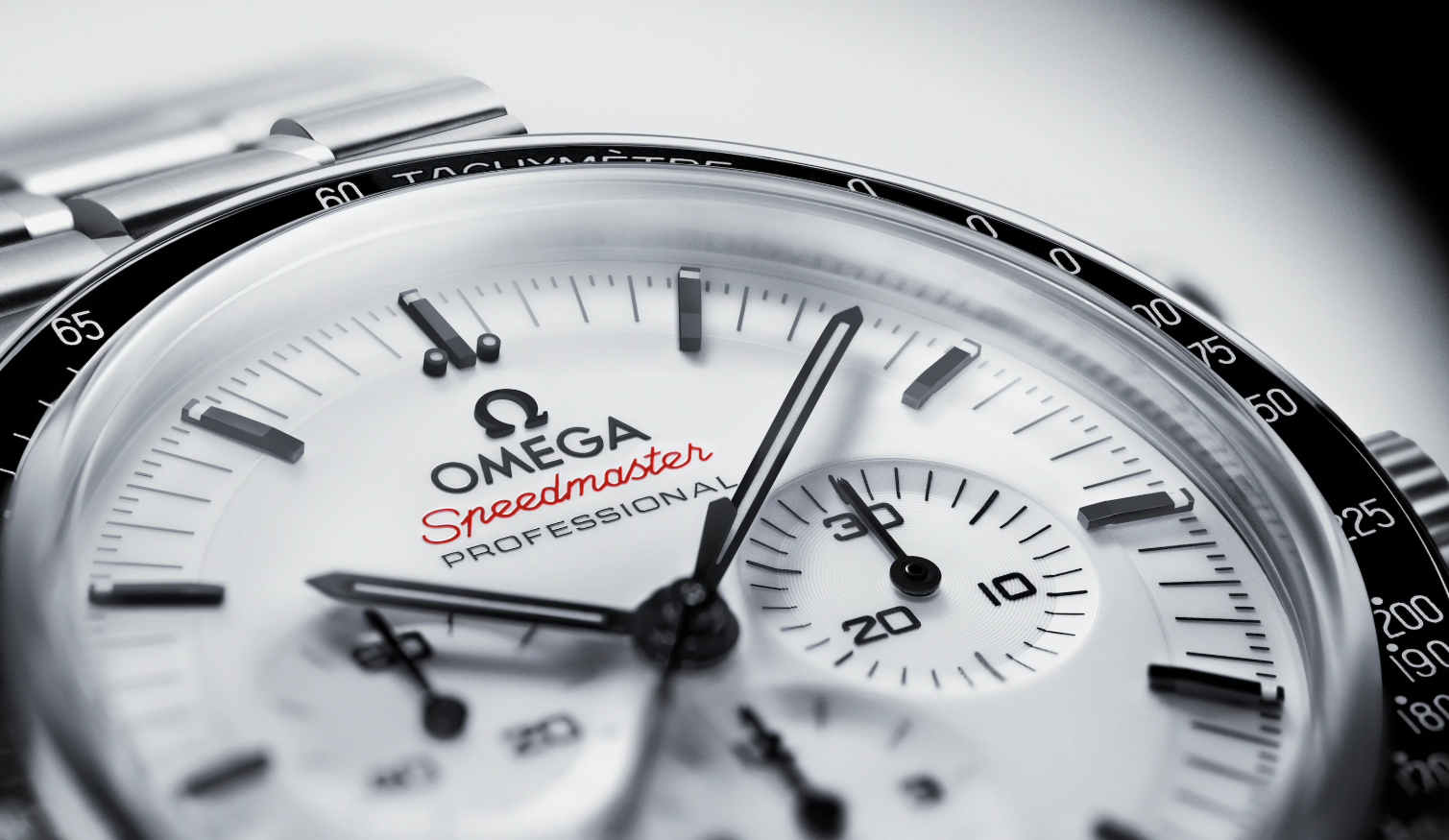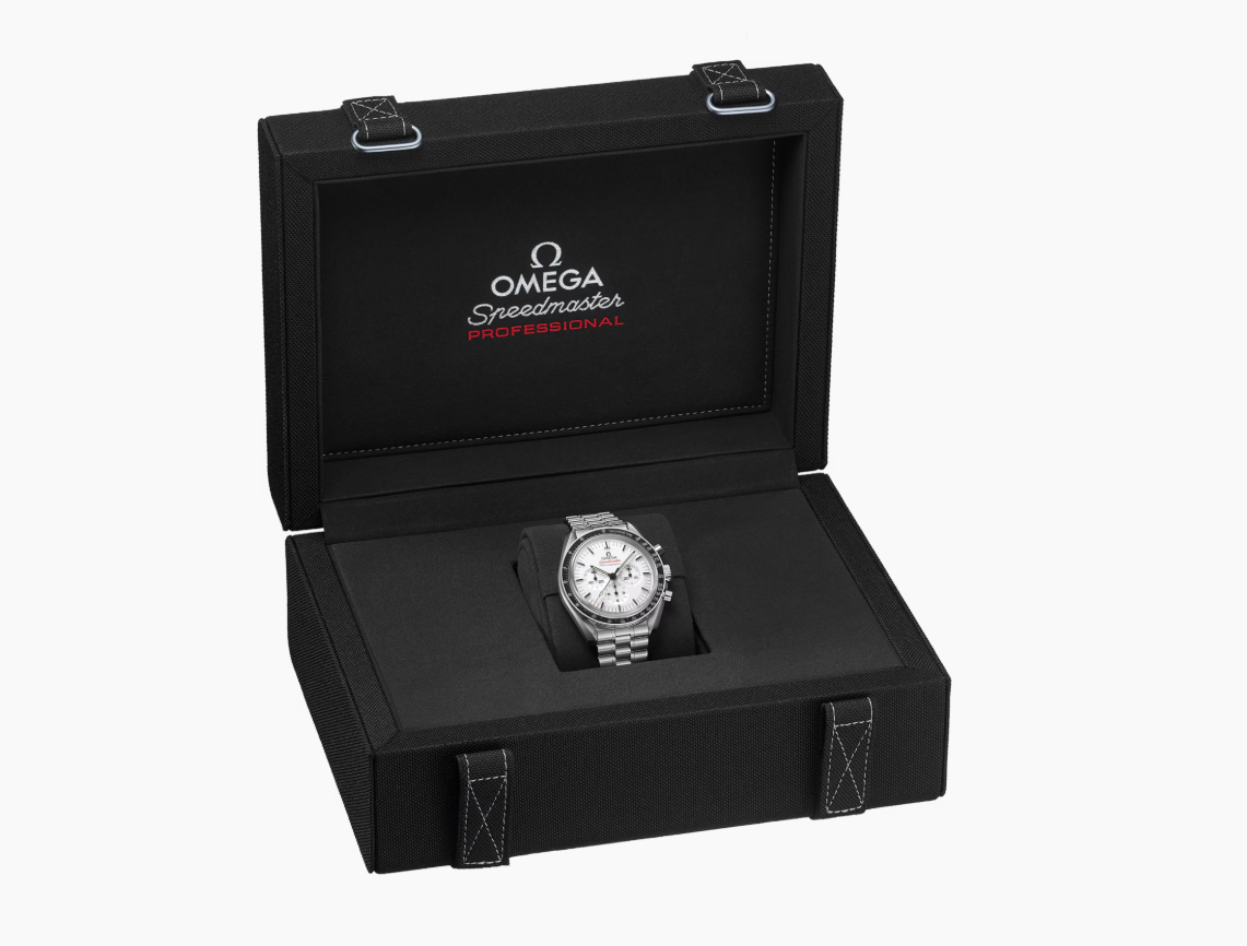 - Dial: The white dial is beautifully complemented by bold black hour markers and hands, ensuring easy readability. The chronograph sub-dials are displayed in black, preserving the classic Speedmaster design while enhancing legibility.