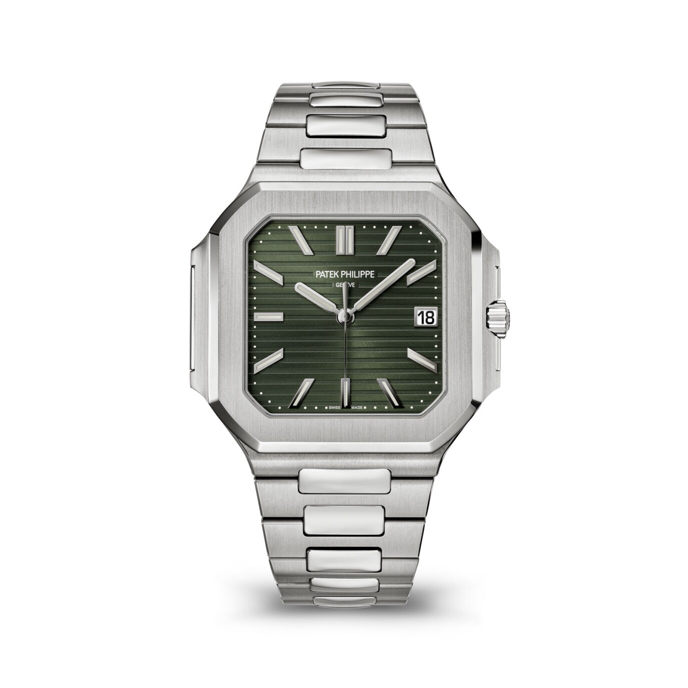 The Patek Philippe Cubicus 5821/1A redefines modern elegance with its distinctive square stainless steel case and a striking sunburst olive green dial. This timepiece embodies a seamless blend of casual sophistication and refined craftsmanship, making it a versatile choice for collectors and enthusiasts alike. With its robust yet slim profile, intricate finishing, and high-precision movement, the Cubicus 5821/1A is a statement piece that delivers both style and functionality.