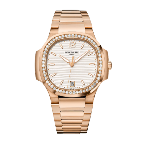 The Patek Philippe Nautilus Ladies Automatic 7118/1200R Silver Dial perfectly balances timeless elegance with sporty sophistication. Designed for women who value exquisite craftsmanship, this self-winding rose gold timepiece features a diamond-set bezel and exceptional technical precision.