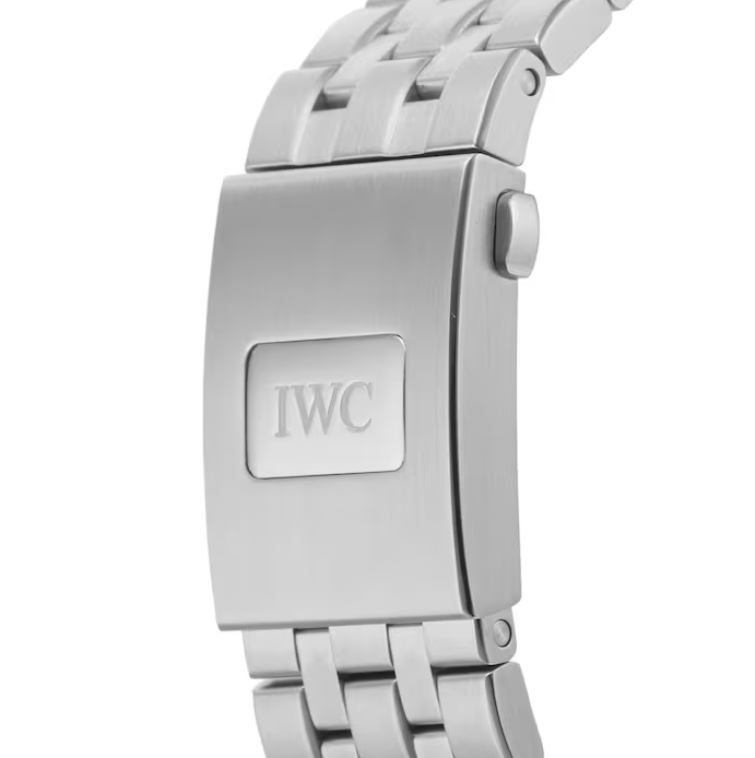The IWC Pilot’s Watch Mark XVII showcases a refined stainless steel case with a sleek black dial, offering a clean, professional look. The Arabic numerals are legible in any light, and the automatic movement ensures precision. The scratch-resistant sapphire crystal protects the dial, maintaining its clarity even with frequent use. The stainless steel bracelet not only adds an elegant touch but also guarantees a secure fit with its folding clasp.