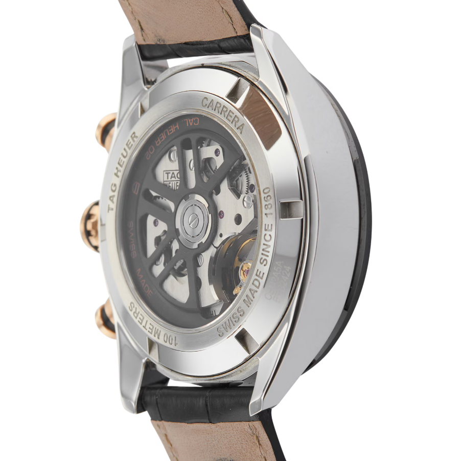This pre-owned Carrera is in very good condition, showcasing only light wear and retaining its excellent craftsmanship. Its black rubber strap offers comfort, while the stainless steel case adds a refined look, ensuring it is as durable as it is stylish.