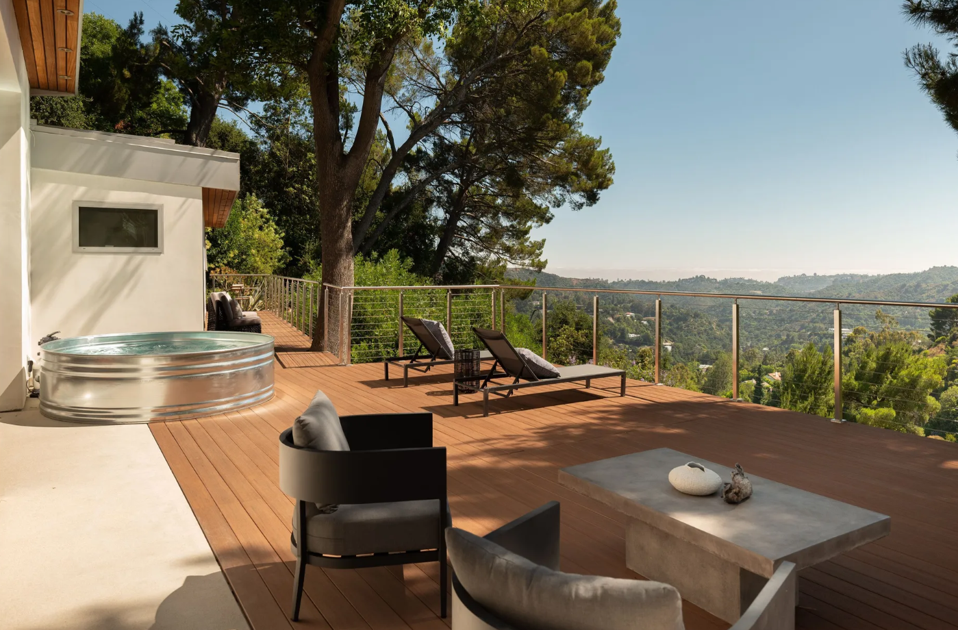 - Private Outdoor Spaces: Oversized deck with panoramic views, lounging, dining, and sunbathing areas