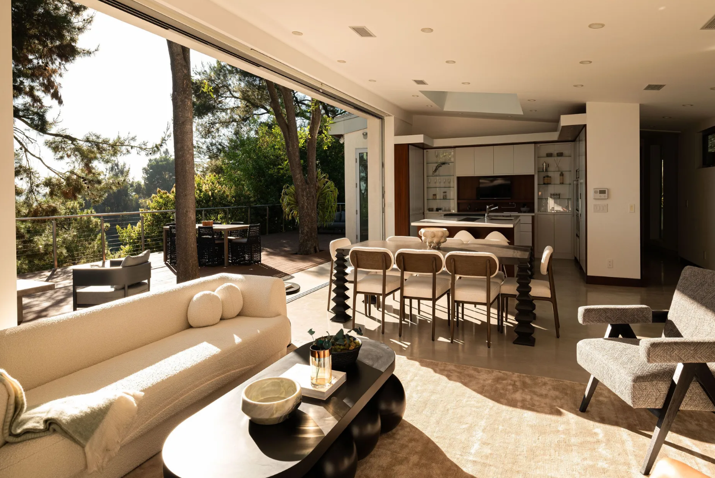 This custom-designed home in Beverly Hills offers a perfect blend of architectural beauty and nature, situated on over an acre of land. With voluminous interiors and seamless indoor-outdoor living spaces, this residence captures the essence of the California lifestyle.