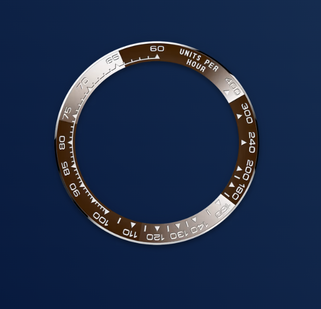 - Chestnut Brown Cerachrom Bezel: Scratch-resistant ceramic with a tachymetric scale for speed measurement.