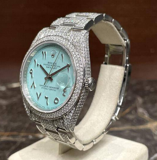 For collectors who appreciate bespoke luxury, the Rolex Datejust 41 Iced Out Arabic Tiffany VS Stones stands as an extraordinary timepiece that merges heritage, precision, and elite craftsmanship.