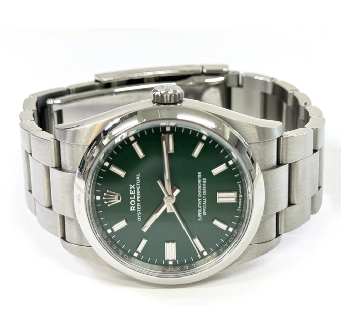 With its bold green dial and impeccable craftsmanship, the Rolex Oyster Perpetual 36 is a statement of refined taste and enduring quality. Whether for daily wear or special occasions, this timepiece embodies Rolex’s heritage of excellence.